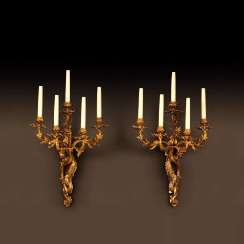 Three pairs of cast iron sconces, after models of the Alexandre III bridge