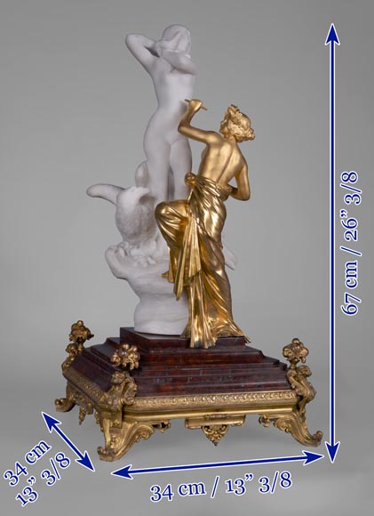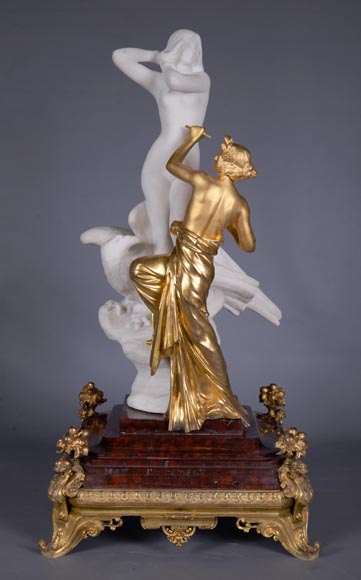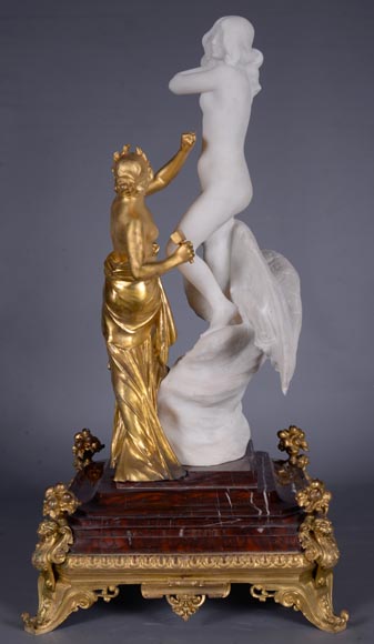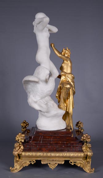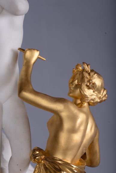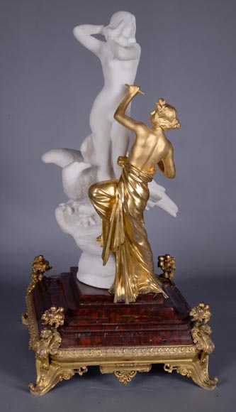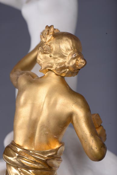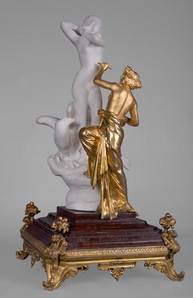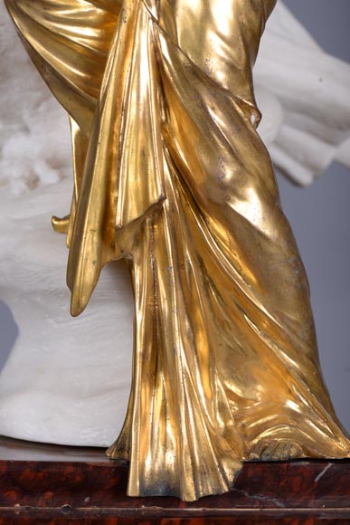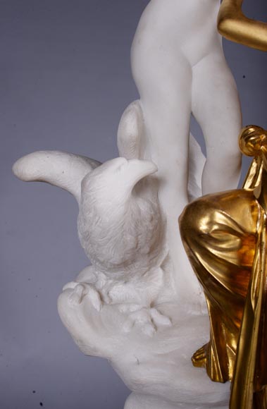 "Allegory of the Sculpture sculpting Hebe and Jupiter's eagle", gilt bronze and marble sculpture